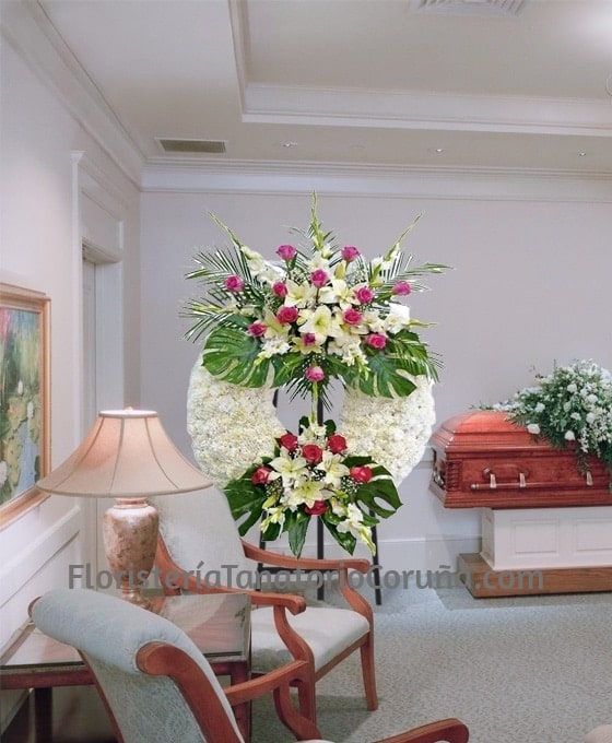 La entrega de nuestras coronas de flores para difuntos se realiza en la mayor brevedad posible. Desde Floristería Tanatorio A Coruña, tu floristería de confianza, antes de hacer la entrega confirmamos donde se encuentra el difunto hora de salida etc.: Tanatorio, sala velatorio y hora del entierro o cremación.